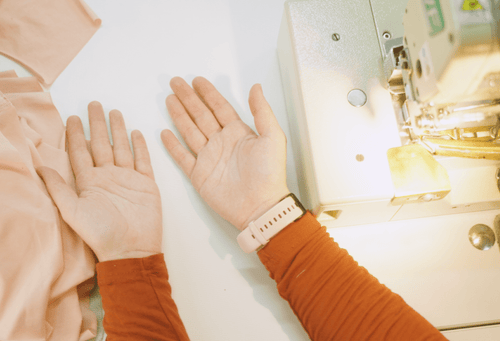 Unsere Materialien, einschließlich der hochwertigen Stoffe und umweltfreundlichen Gummibänder, werden ausschließlich von in Europa ansässigen Lieferant:innen bezogen. Außerdem werden alle unsere Produkte in Europa hergestellt, was unser Engagement für eine ethische Produktion und lokale Gemeinschaften widerspiegelt.